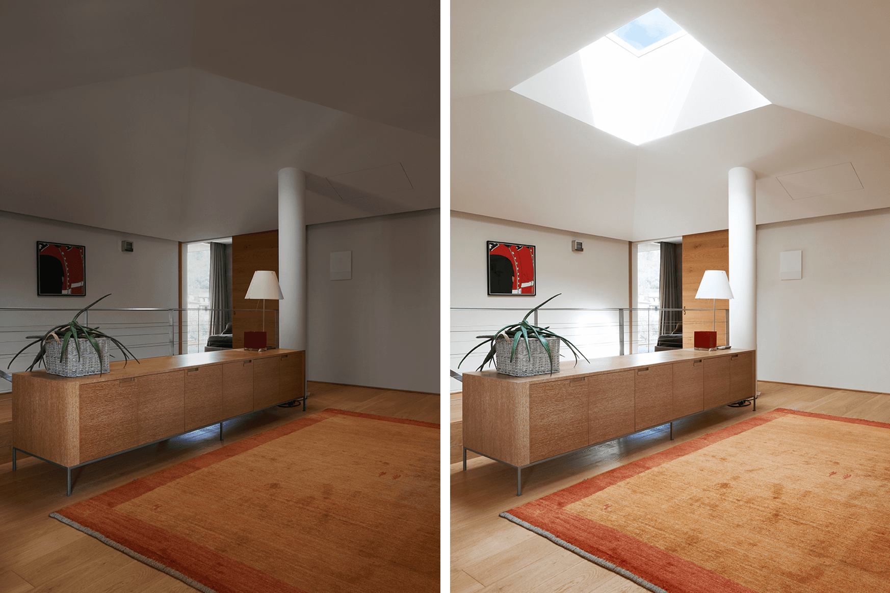 Le finestre per tetti piani portano luce naturale in profondità negli spazi, migliorandone la vivibilità e rendendoli più dinamici.